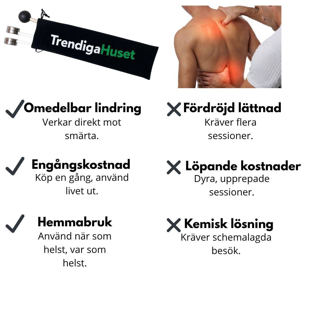 Läkinstrumentet ger riktad lindring genom djupa, lugnande vibrationer som förbättrar blodflödet och lindrar ömhet.