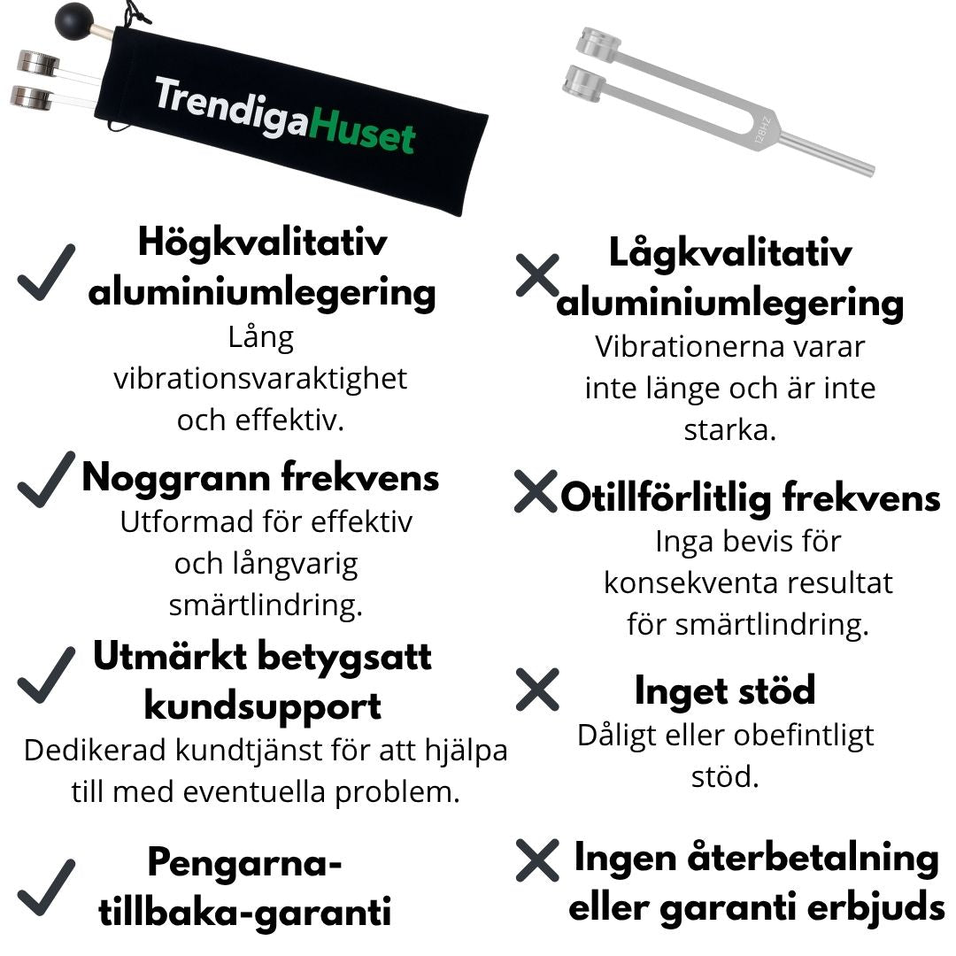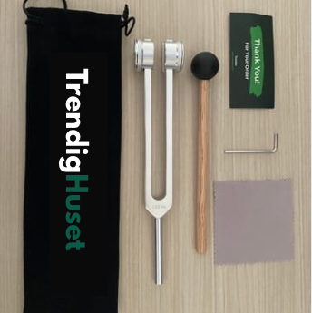 Du får ett 128Hz-läkningsinstrument, en klubba, en bärväska och en insexnyckel för att fästa stövlar eller justera vikterna.